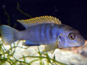 Labidochromis hong sweden is rarely used by aquarists. In nature, it inhabits the surroundings of the island of Lundo.In contrast to the shape of yellow, this animal has a pronounced sexual differentiation: males are characterized by blue or mixed with white color, the skin of females is brown, and the dorsal fin is colored in orange.