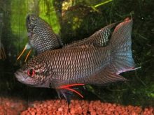 Black Macropod native to Vietnam. Its color ranges from dark gray to brown. The tail has a deep crimson color. The nature of this species is much calmer than that of its relatives.