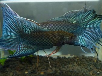 To distinguish the male from the female, you will need to carefully examine them. The male body looks slimmer by a few centimeters.There are differences in color - in males it is much brighter. In addition, the fins of males look longer and sharper, while in females they are slightly rounded and short. During spawning, the male builds a nest from fragments of plants and air bubbles practically on the surface.