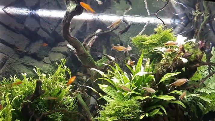 As for the soil, then give preference to quartz varieties that do not affect the composition of water. Several small-leaved plants can be planted around the perimeter for aesthetics, so that the fish swim among the greenery, but do not populate the center of the aquarium with algae - this will be a site for the free movement of fish.