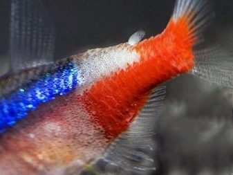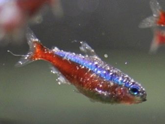 Another disease is ichthyophthyroidism. A variety of tubercles, specks appear on the body of the neon, the pet looks as if sprinkled with semolina. This "sprinkling" and caused the popular name of the disease - "semolina". To cure an ailment the aquarium is saturated with oxygen, and the water temperature is increased by a couple of degrees. If these measures are ineffective, it is recommended use purchased drugs.