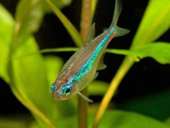 Aquarium neons look very small and slender. They have a flat side, elongated body, with which they can quickly move between plants and hide in shelters. The length of the body is from 3 to 3.5 cm. It is very simple to understand that you have neon in front of you, thanks to the characteristic neon strip, which can be clearly seen even in the dark. The fins of the fish are small, they are transparent. As for the nature of the pets, he is quite calm and peaceful. These are schooling fish, so they definitely need neighbors, as well as a spacious aquarium where fish can frolic.