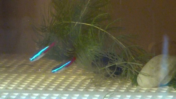 Females toss up to 200 eggs. After this, adult neons are placed in another aquarium so that they do not eat their own offspring, and spawning is protected from the light, because caviar can die under such conditions.