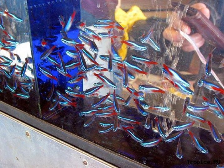 After returning home Neon should not be immediately transplanted from the package to the future reservoir. "Temporary housing" is better to put in a regular aquarium with water and wait until the temperature of the liquid in the portable tank and constantly equal. Only after this fish can be released.