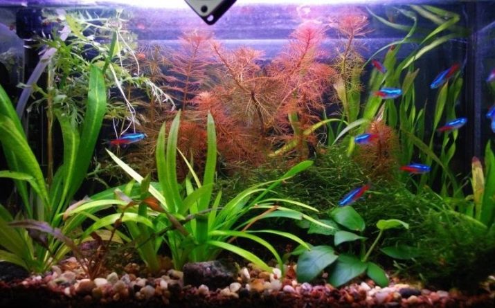 The water level in the aquarium is 15-17 centimeters. Distilled water is taken into which a glass of liquid is added from a conventional aquarium in which neons live.