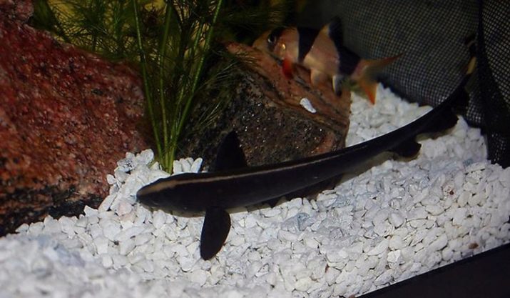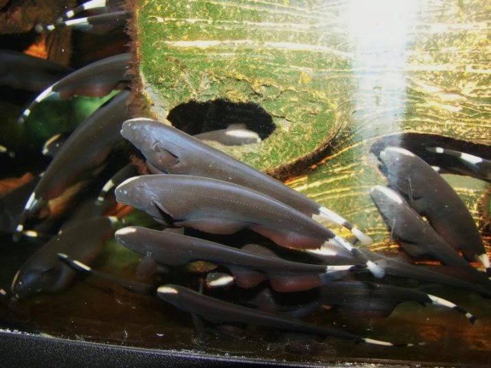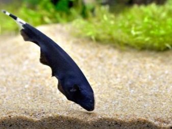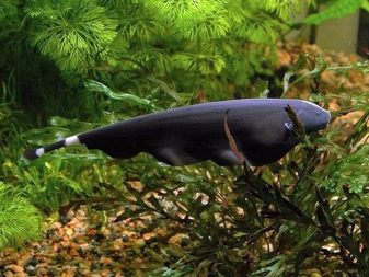 In its natural environment black knives in length can reach up to half a meter and live up to 15 years. The second feature of the species is the complete absence of scales. The skin is velvety, jet black. There is a white spot on the head that passes into a thin strip and stretches along the entire ridge to the tail, ending with two vertical rings of white color. Such an unusual structure allows the fish to move in various ways (on the side, up, down, back, forward, upside down, hang in one place).