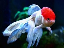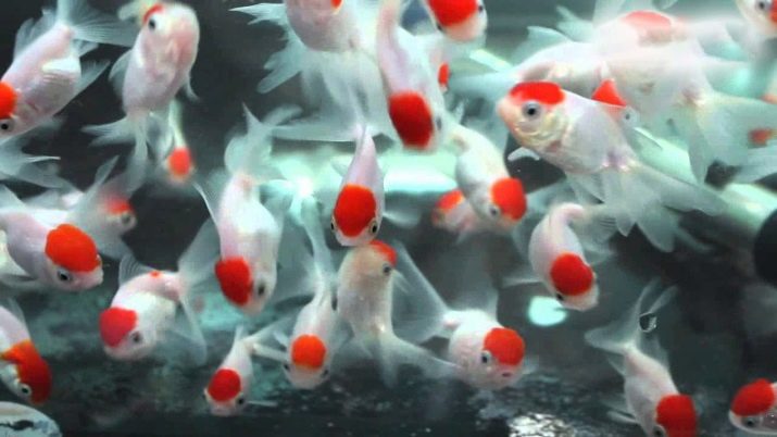 - "Red Riding Hood". A white fish that has on its head a large number of red growths resembling a hat. Due to this feature and the combination of white and red, the aquatic animal has a spectacular and elegant appearance, as well as a body resembling an egg. The body length reaches 25 cm. A large fin is located on the back. Tail and anal limbs are distinguished by a long bifurcated form.
