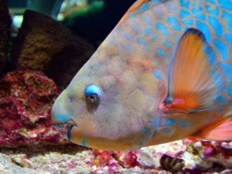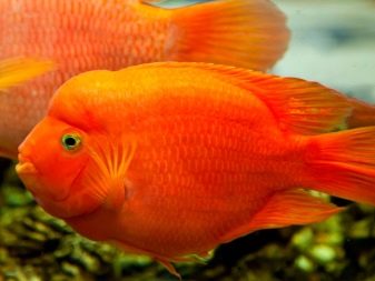 Particular attention should be paid to feeding parrot fish. The fact is that they have a very unusual body structure, namely, the mouth opening at a small angle, and therefore food intake sometimes makes them difficult. These pets are only able to eat food that floats on the surface or begins to settle to the bottom, and it is impossible to pick up a piece of food for a fish with such a non-standard jaw from the bottom.