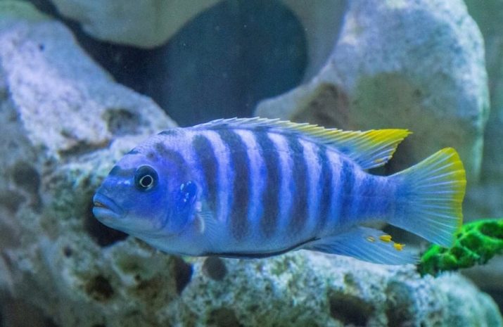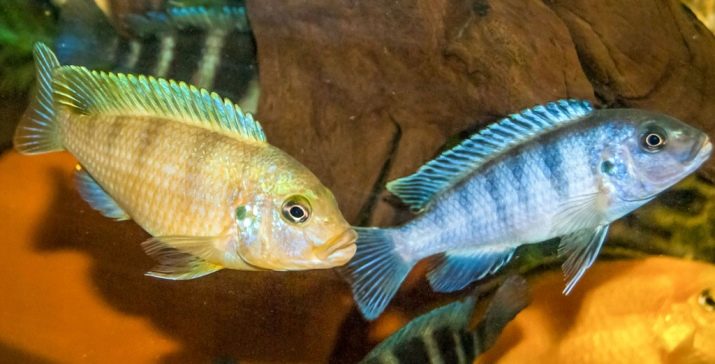 - Acei. Subspecies: Itungi, Luval, Ngara, Dvangva, Mzuli. The color varies depending on the variety, it is bright blue, beige, black, there is a yellow tint on the fins. In the wild, this fish grows up to 10 cm, while in the aquarium it can "extort" up to 17-18. But despite such impressive parameters, the fish is quite peaceful, calm, gets along well with representatives of its own and of another species. Acei live in packs of 5 individuals in a group.