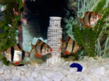Then you need to purchase and install a powerful filter that can distill at least two volumes of the aquarium in an hour, and a compressor that saturates the water with oxygen. Water is updated weekly, replacing from 20 to 30% of the total volume. The temperature of the water in the aquarium should be + 24-27 degrees Celsius, acidity - 7 units, and the stiffness index is not more than 25 dGh.