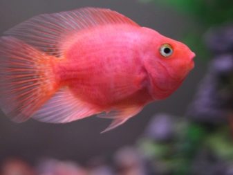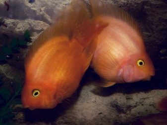 but not all parrots are painted; most fish have a natural color. Among natural shades, red and orange colors prevail, yellow is a little less common. It is also worth noting that among parrot fish, completely depigmented individuals are often found - albinos. They differ in poor health, low stamina and require the creation of more comfortable conditions.