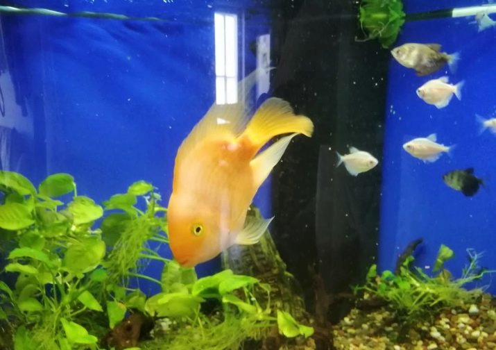 And also we must not forget about the backlight. Parrot fish like moderate light, so if the aquarium is in a dark room, then it must be highlighted. As a lighting device, you can use lamps with a red light, as they very beautifully illuminate the scales of fish, making them even more spectacular.