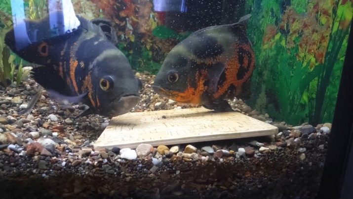 Before the mating season, astronotuses begin to "divide" the territory, in conflict with other inhabitants of the aquarium. This behavior is due to the instinctive desire of predators to protect their future offspring from sources of possible danger.