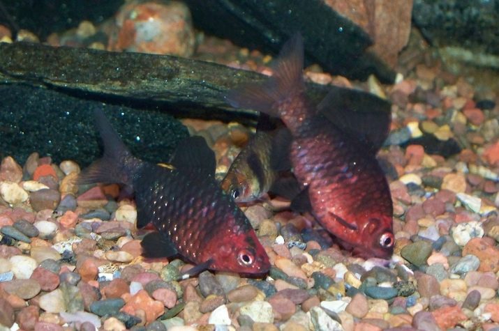 - picking up soil, try to find coarse-grained river sand, gravel without sharp corners or small pebbles; it’s easy to take care of them, it’s enough just to regularly clean from organic matter; it is good if the soil is dark, as this creates the necessary contrast with the color of the barbs and draws attention to the fish even more;
