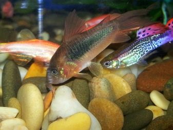 An unusual fish with a body color resembling the coloring of the famous bear. The panda corridor grows up to 5 cm in length. His body has a pale pink or silver-yellow color with pronounced dark marks: on the eyes (in the form of a mask), on the back and at the base of the caudal fin. The unusual appearance makes these fish popular among amateur aquarists.