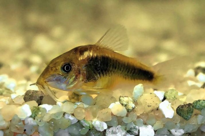 Catfish corridors with a bright golden color are also sometimes referred to as bronze or aeneuses. This species is characterized by color variability - from lemon to almost orange. Particularly saturated body color in the back. Somik is very decorative, popular among amateur aquarists, grows up to 7 cm in length.