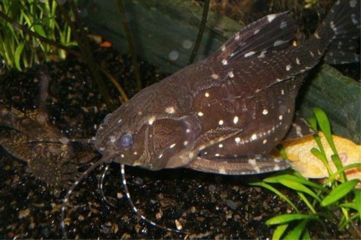 It can often be found at breeders. It is in demand due to its pretty dark color with light “stars”. Peru is not the largest representative of the group, its body length can reach up to 14 cm. Like its relatives, he prefers to live in the company of other catfish.