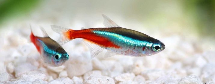 Be sure to consider the size of aquarium fish. Do not place large and small pets in one aquarium, even if they are great for each other in other respects. Often, small fish, including neons, experience stress from the neighborhood near large brethren. As a result, in small individuals there is a loss of appetite, anxiety or lethargy, and also often they lose their bright color and even begin to hurt.