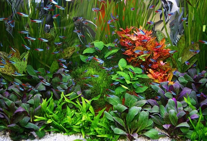 Remember that due to the excessive activity of neons, the water in your home aquarium will constantly be in motion, which scares many small fish, forcing them to hide and disguise themselves.