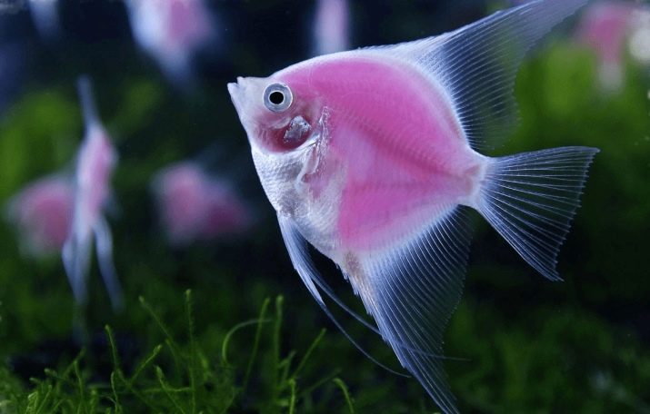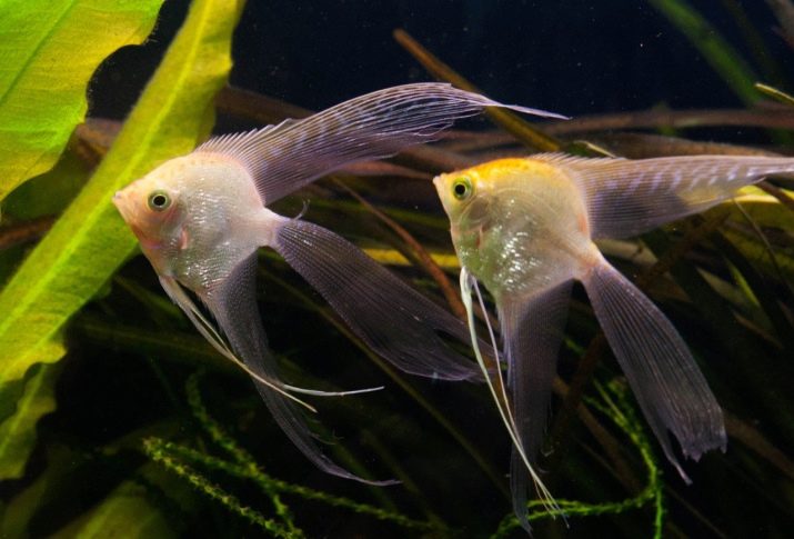 - Angelfish differs in a rhomboid, compressed structure with long fins, pectorals are thin, filiform. Coloring can be varied.