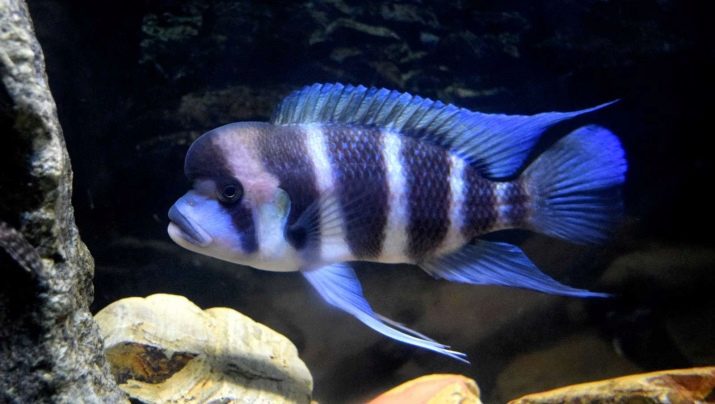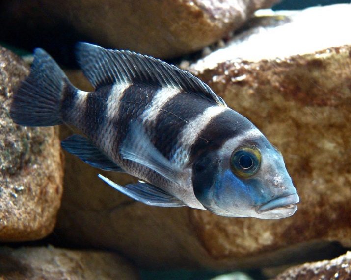 - Frontose - Inhabitant of the sandy bottom of Tanganyika. The body of the fish is long, with flattened sides and a high back, a characteristic growth appears on the head of adults. The body color of the frontoza can vary from grayish-white to gray-blue, on the sides there are six transverse stripes of different widths of a dark tone. This species of fish is distinguished by its phlegmatic nature and inactivity.