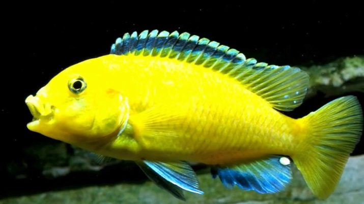 - Labidochromis yellow, also called lemon or hummingbird, belongs to the dwarf species of cichlids. Individuals of both sexes are yellow in color, in dominant males it is more saturated, and, in addition, their fins are black, the dorsal has a yellow border. Females have yellow fins.
