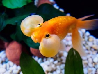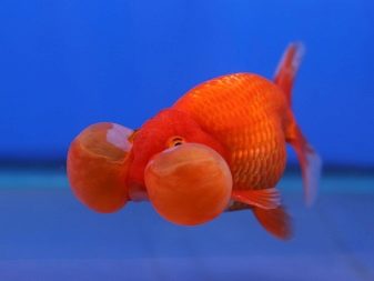 This category includes a goldfish - water eyes, which has another name - bubble eyes. It is such a view that many consider the strangest among other representatives of this decorative group. It is already noteworthy that on the trunk 0.15-0.2 m long there is no dorsal fin. There are bubbles located on the underside of the eyes. Although such areas sometimes reach 25% of the entire length of the body, they are very gentle and sensitive to all external influences.