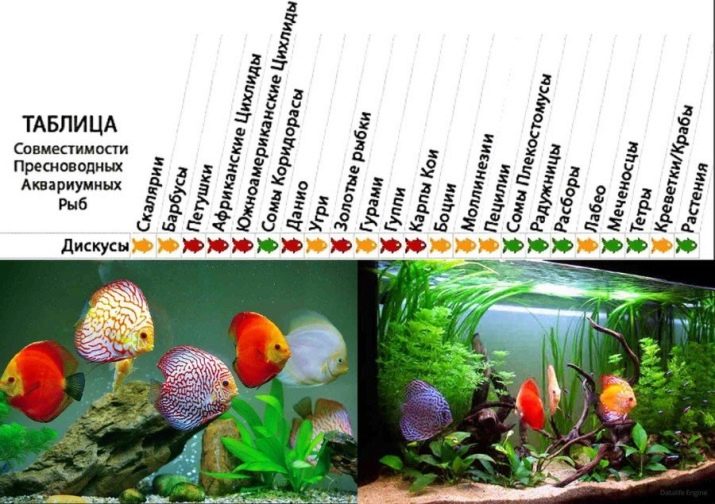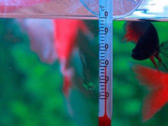 - Water temperature. For the predominant part of fish, the norm is water temperature in the range of 22-26 ° C, but for each species it should be specified separately, since the same discus needs more heat (28-31 ° C), and the famous goldfish is looking for coolness (18-23 ° C) In any case, extreme temperature changes remain extremely undesirable, and for those fish that swallow air directly from the atmosphere, its temperature compatibility with water in the aquarium is also needed.
