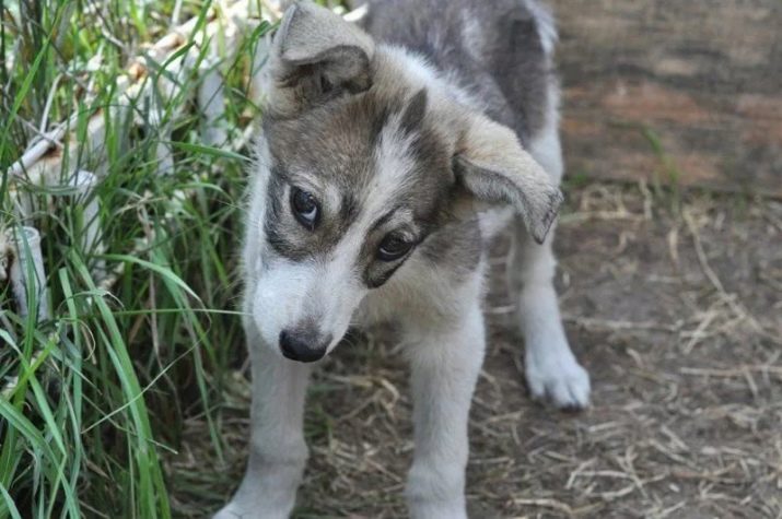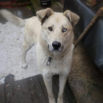 A crossbreed with a husky inherits from an alabai large physique. The color of the coat, blue eyes, standing triangular ears - this is a manifestation of the husky gene. The fur of such a pet is dense.