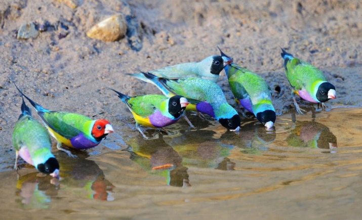 Like other species of Amadinae, they belong to flocking species that migrate together in large numbers. Ornithologists distinguish 3 main types of Gould’s amadines, which can be found in the wild and hot nature: