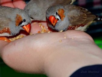 Feeding zebra birds should be carried out 1 time per day, 1 teaspoon per individual. Their diet is allowed to be diluted with a variety of cereals (for example, millet, buckwheat). It is important to add fresh greens to their menu, for example, dill or parsley. Fruits, vegetables, berries will not be superfluous.
