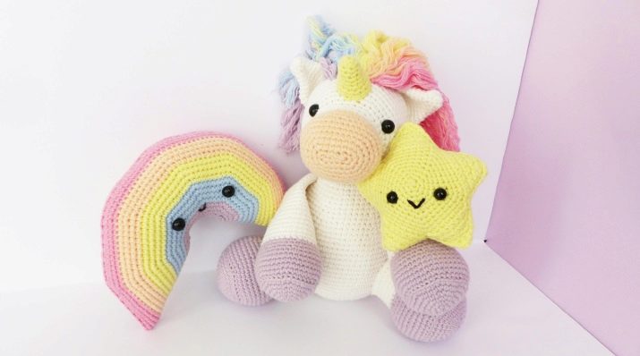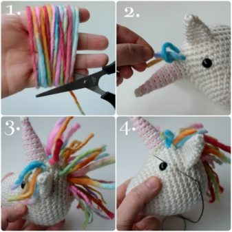 Most often, it is proposed to bind separately the head, trunk, paws, ears. When all the parts are ready, then it is recommended to connect them together. You can do this by knitting or stitching.A cute knitted unicorn will be a wonderful decoration and will give a lot of pleasant emotions to both its author and all those who see him.