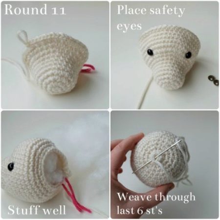 - The first row consists of an amigurumi ring of 6 loops.