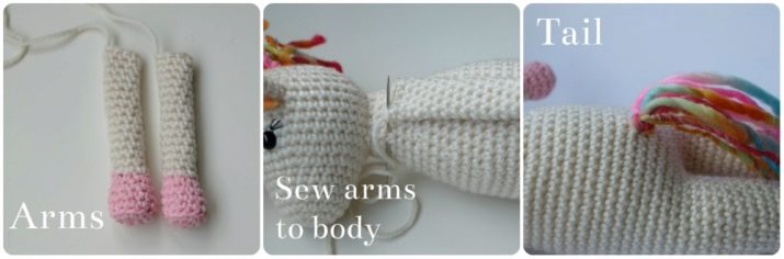 In total, at this stage, 22 rows will need to be connected. For knitting, you need to remember the single crochet. They will be connected to the head, as well as other parts of the unicorn.