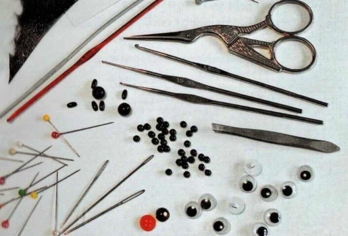 The hook is the main working tool of the knitter. It must match the yarn in thickness, otherwise the work will not do without blemish. If the yarn is thin, you need a hook of 1.5-2, if the thread is thicker, the number of the hook is increasing. Hooks can be selected plastic, metal, bone, wooden. And again, this is a matter of convenience and personal preference. The craftswoman usually uses knitting needles only for knitting certain attributes of a toy - for example, making a dress or other outfit for a hero.