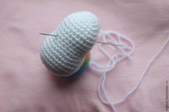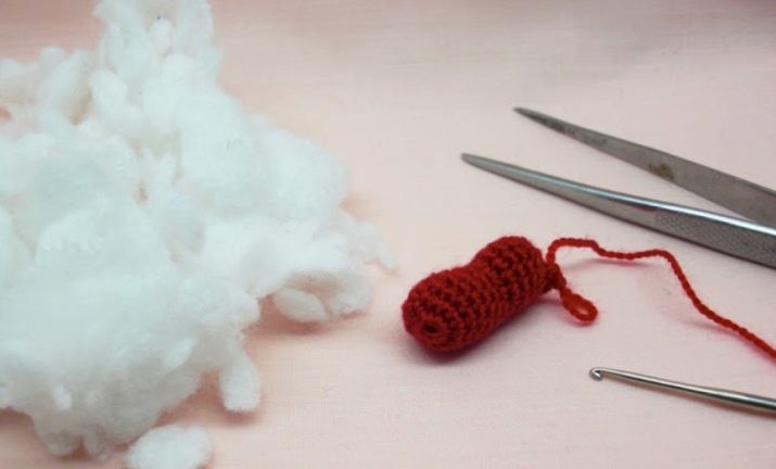 - The filler sticks out of the toy. Stuffing a toy can be said to be, if not a whole art, then a separate topic for consideration. When the part is completed, it is necessary to fill it not to the edges, but leave a small gap so that the hook slides. And on the last row through a small hole, this gap is filled with any suitable thin stick (skewer, for example).
