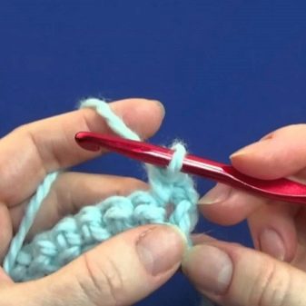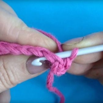 - in the 1st row 2 air loops are knitted, then in the second of them - 6 single crochets;