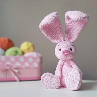 - Disproportionality. Long-legged, long-eared, with a large head and small body - amigurumi hares look like fabulous creatures. Sometimes the paws, on the contrary, are made short, but a general imbalance in the figure must be present.