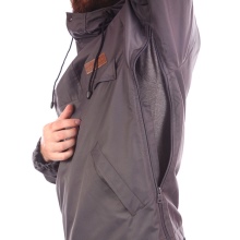 Minimalistic model with a kangaroo breast pocket and a zipper to the middle of the chest. The jacket is equipped with a taffeta lining, additional cuts on the zippers on the sides, an adjustable hood and cuffs.