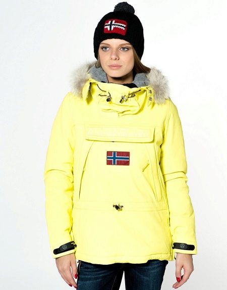 The most characteristic and recognizable color solutions for Napapijri anoraks can be called black and dark blue, bright scarlet, yellow, beige, blue, different shades of green.
