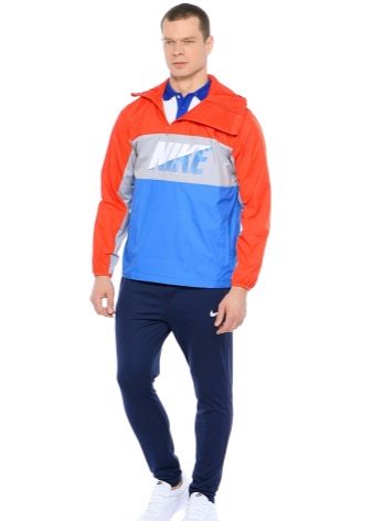 Among men, the Nike Half-Zip Jacket model is now especially popular - this is a three-color anorak. On his chest - on a white inset - flaunts a large company logo, originally made in two colors.