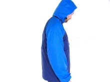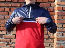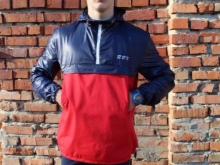 Reebok Red is a very popular anorak model. This is a two-color demi-season version (with a red “body” jacket and dark blue sleeves). The model is interesting in that the traditional zipper on the front section for donning is replaced by two diagonally extending from the armpits to the neck and converging on an uncharacteristically narrow collar for anoraks.The front pocket is sewn-in, with a zipper, there are two side ones on the bottom - also on the fastener. There is one side slit with a zipper for greater donning and ventilation.