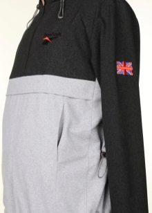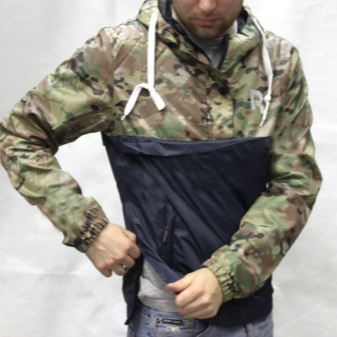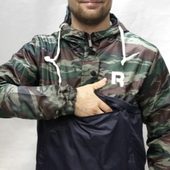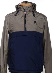 The jacket differs from the classic anorak by replacing the front zipper with button fasteners. On the sides there are cuts with zippers - for ventilation. The hood is regulated by a lace; on the cuffs of the sleeves, instead of traditional Velcro, elastic is sewn. Side pockets are connected in one (kangaroo), located at the bottom of the hem of the jacket. The model is designed for rainy summers or not very cold autumn-spring period.
