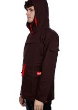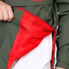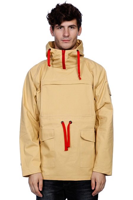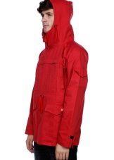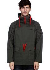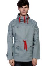 Here are observed pockets classic for anoraks (large chest, small on the sleeve), and there are additional patch pockets on the sides. Zippers in the area of the side seams - for ventilation. The sleeves are pulled by Velcro, the hood by a cord.