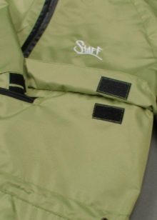 The model lacks a traditional chest pocket. There is a sewn-in pocket just above the belt, fastened with a zipper. On the sides of it are kangaroo pockets. On the sleeves are classic Velcro for adjusting the width of the cuff. The size range is classic (S, M, L).