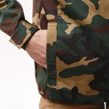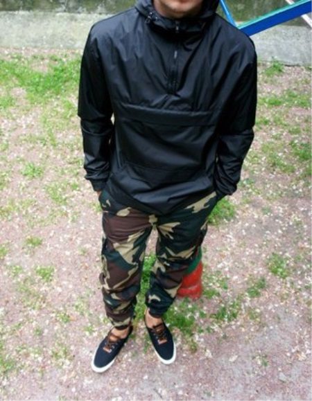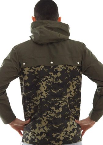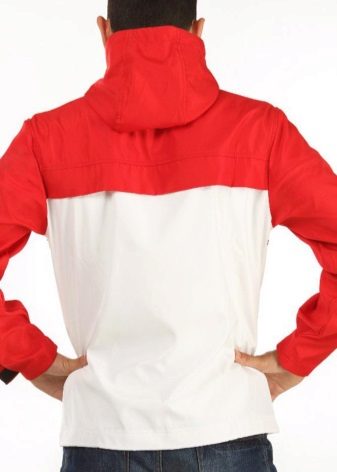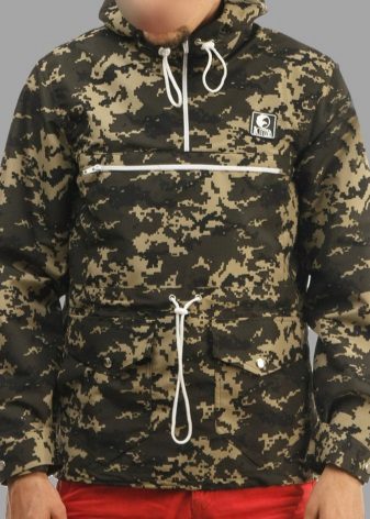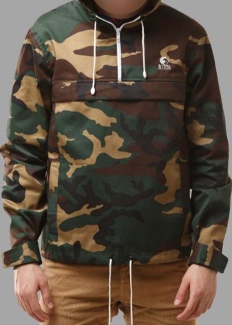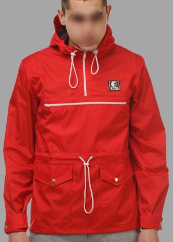 Such anoraks are made from natural cotton fabric with a membrane coating to protect from rain. There are many colors: black, white, red, navy blue, light blue, two-tone, camouflage, abstract prints.