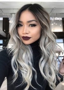 - Balayazh platinum blonde perfectly harmonizes with dark brown hair. It can be just straight long hair, and laconic bob. And such curls look especially beneficial when they are slightly twisted.