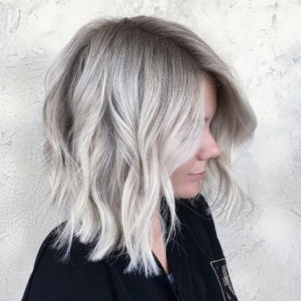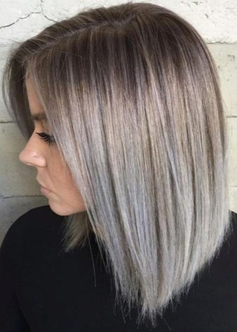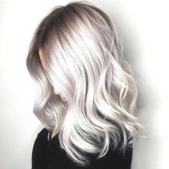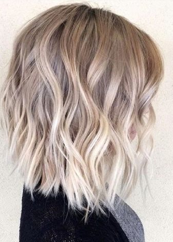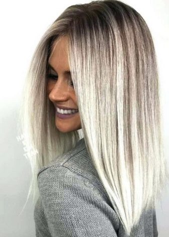- Balayazh ashen blond. A smooth transition from light brown to a cold white shade looks especially advantageous on medium hair.