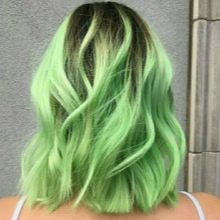 The last two varieties of color dyeing are recommended for a more expressive contrast of selected shades with the main one. Among the popular options, you can distinguish a hammock for dark hair with pink, blue and even green complementary color.