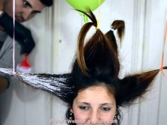 - strong fixation styling composition is applied to the strands, after which the hair is divided into several parts and stained;
